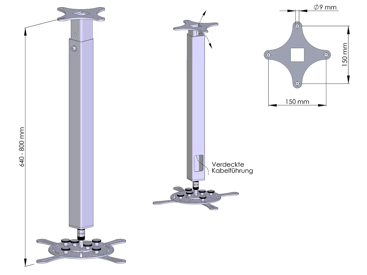 - 1 x Deckenhalterung Höhe 640-800 mm einstellbar