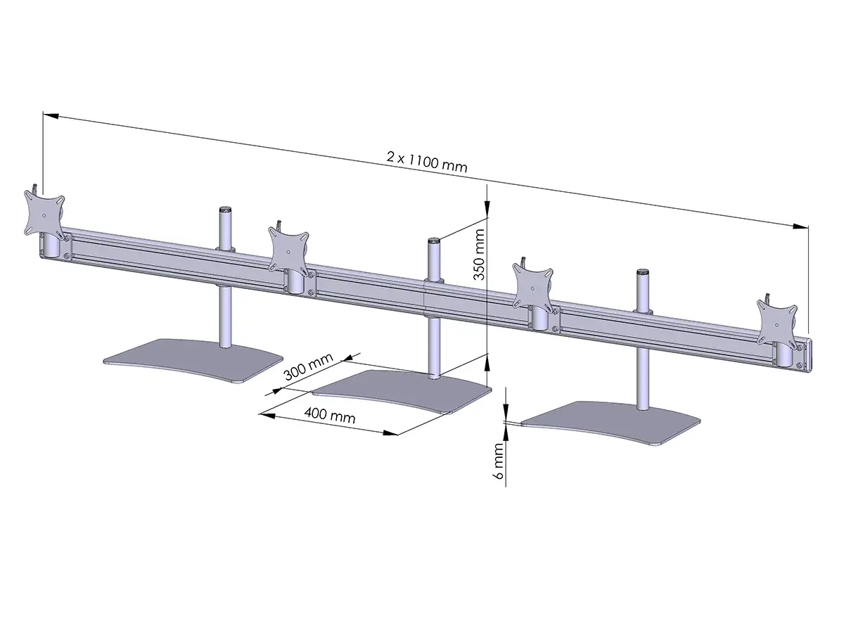 Verwandle Deinen Arbeitsplatz mit der innovativen Flat-Monitor-Tischhalterung (gerade Traverse) in ein echtes Highlight! Diese elegante Lösung wurde speziell für vier Monitore bis zu 24 Zoll entwickelt und bietet Dir maximale Flexibilität sowie eine ergonomische Arbeitsweise.