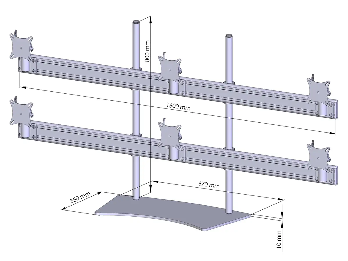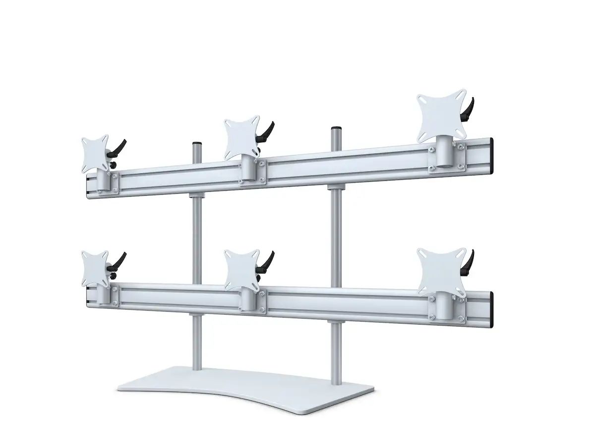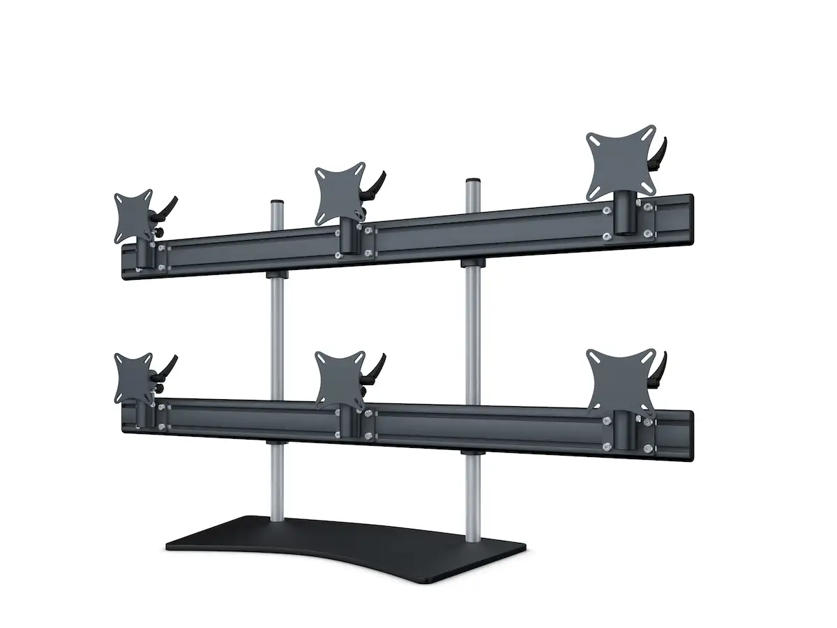 Flat-System Monitorhalter für 6 Monitore mit Tisch-Stand-Fuß 3+3 - 25''-32''