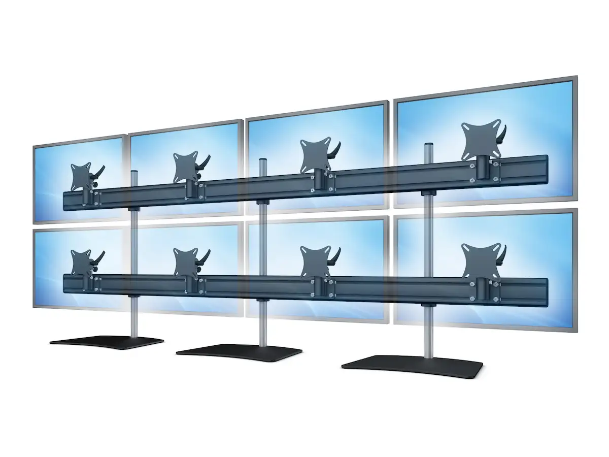 Flat-System Monitorhalter für 8 Monitore mit Tisch-Stand-Fuß 4+4 - 25''-32"