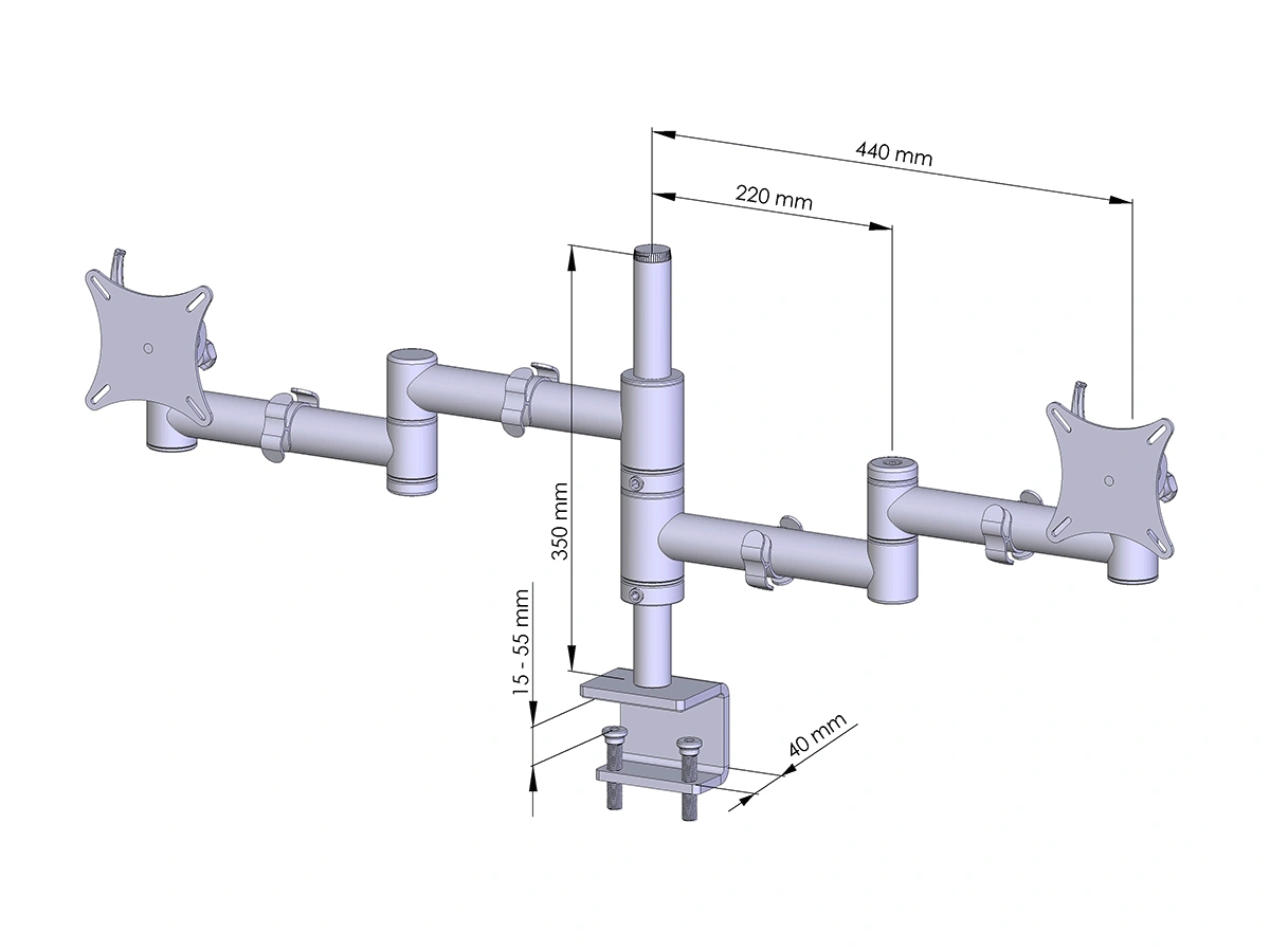 Flex-System Monitorhalterung für 2 Bildschirme mit Tisch-Klemme 2er - 17''-24''  - zusätzliches Produktbild