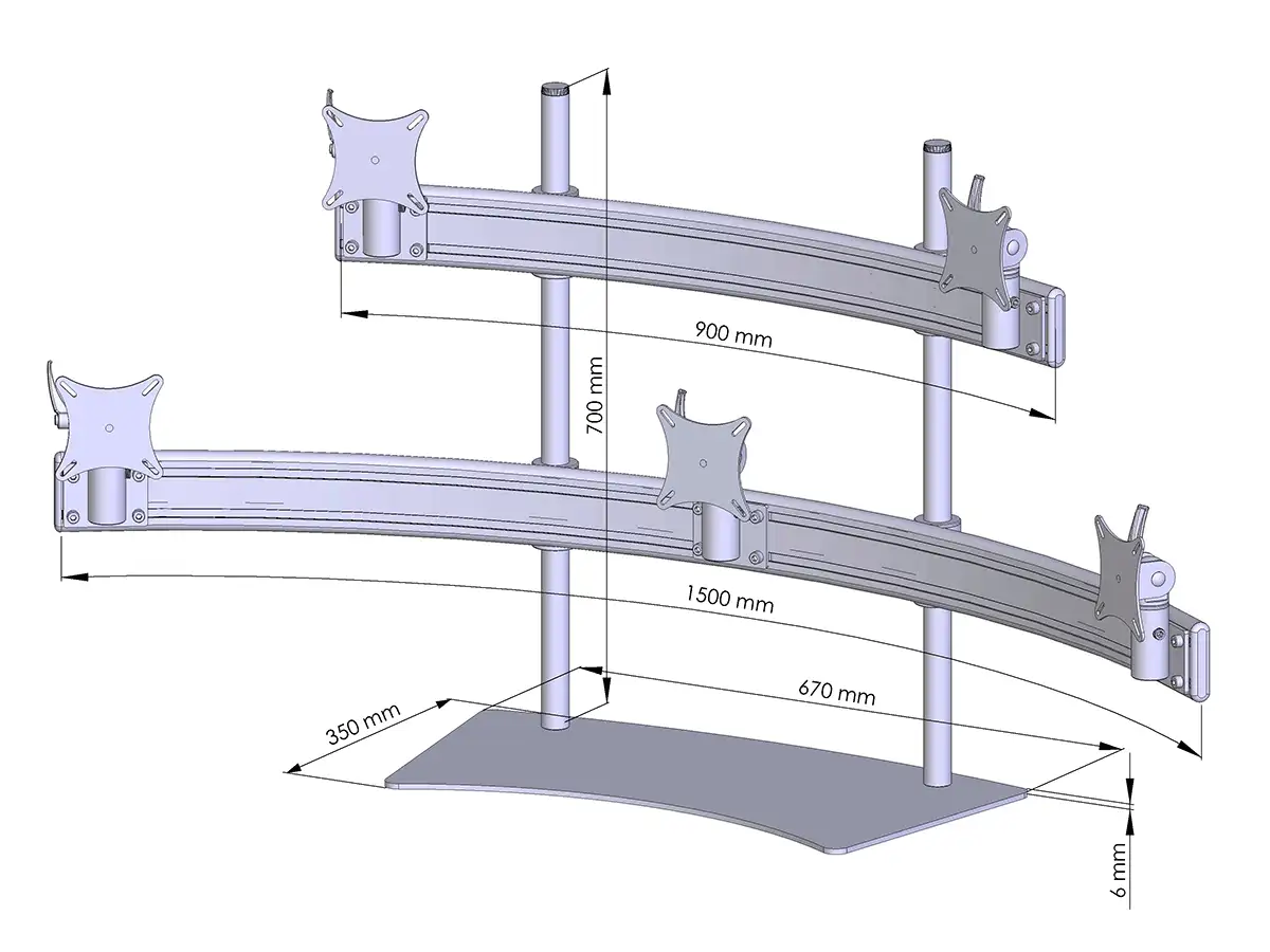 Para-System Monitorhalter für 5 Monitore mit Tisch-Stand 3+2 - 20''-24''