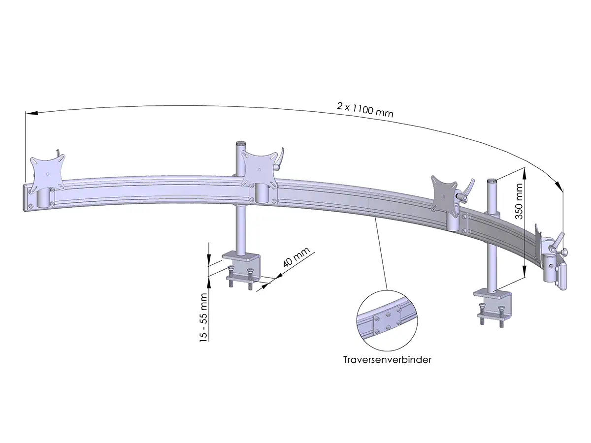 - zur parabolischen (halbrunden) Anordnung von 2 bis 8 TFT-Monitoren