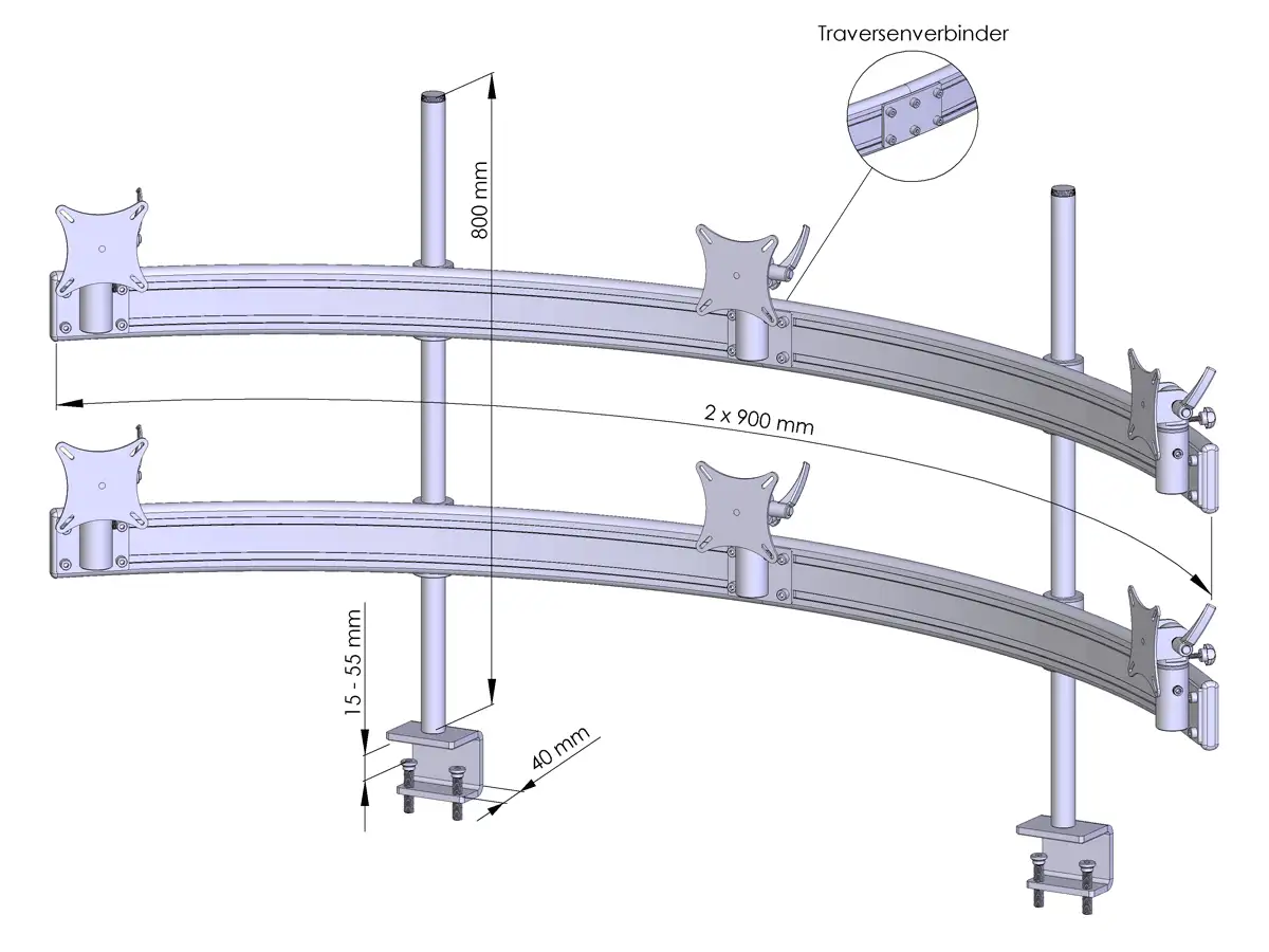 - stabile Tisch-Klemmbefestigung für Tischplatten von 15 - 55 mm für eine oder mehrere Ebenen