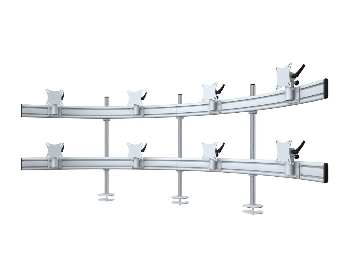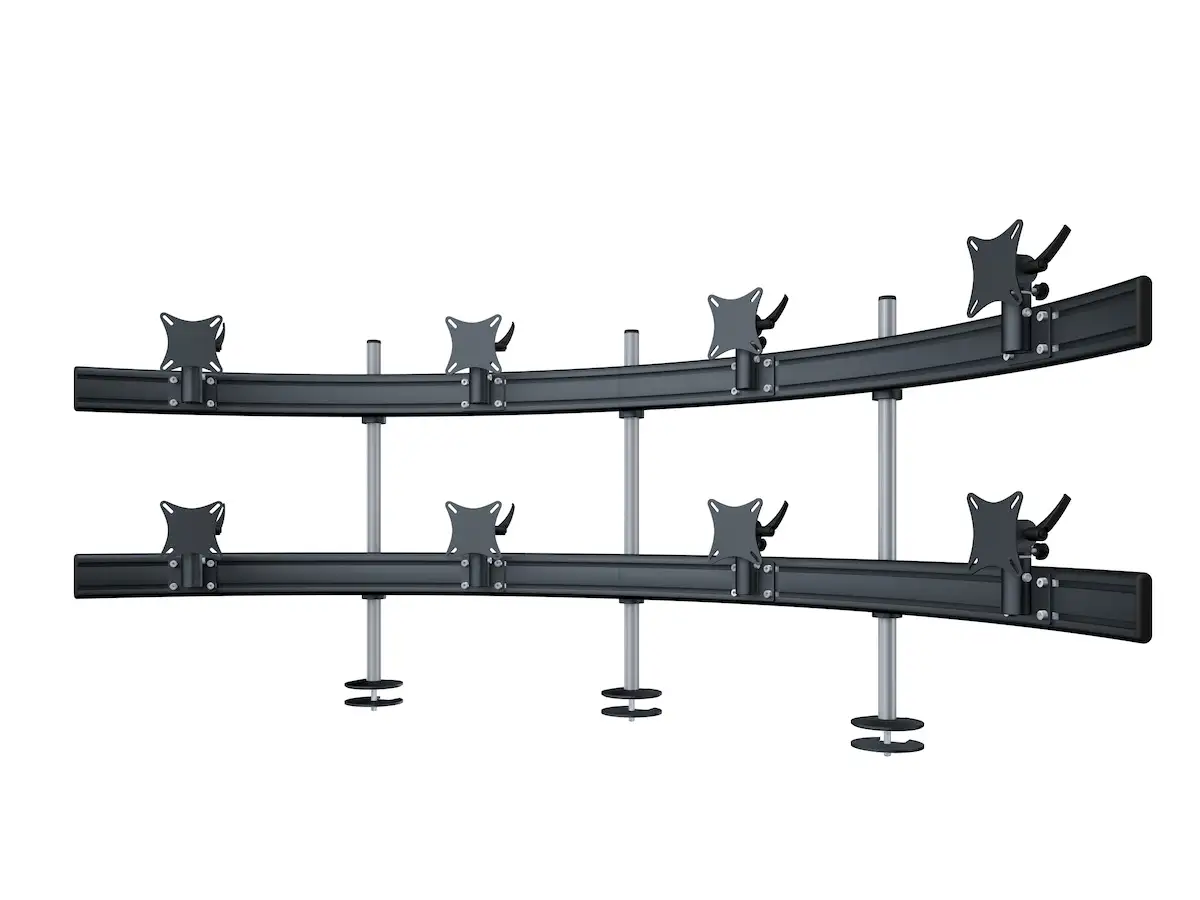 Diese elegante Lösung ist speziell für acht Monitore bis zu 32 Zoll entwickelt und bietet Dir eine flexible und ergonomische Arbeitsweise. Über die VESA-Halterungen kannst Du die Monitore nach Deinen Bedürfnissen neigen und präzise ausrichten. So sorgst Du nicht nur für eine gesunde Körperhaltung, sondern auch für optimalen Arbeitskomfort – egal, ob Du lange Stunden am Schreibtisch verbringst oder kreative Projekte in mehreren Fenstern gleichzeitig bearbeitest. Genieße den Freiraum, den Du für effizientes Arbeiten brauchst!